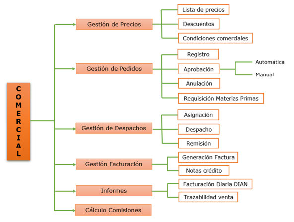 Registro y control de los movimientos generados por la empresa en el desarrollo del giro normal de su actividad comercial, con una altísima flexibilidad, se pueden administrar las reglas de negocio, realizar un proceso de venta por múltiples canales y monitorear las estadísticas de forma detallada según las variables involucradas.